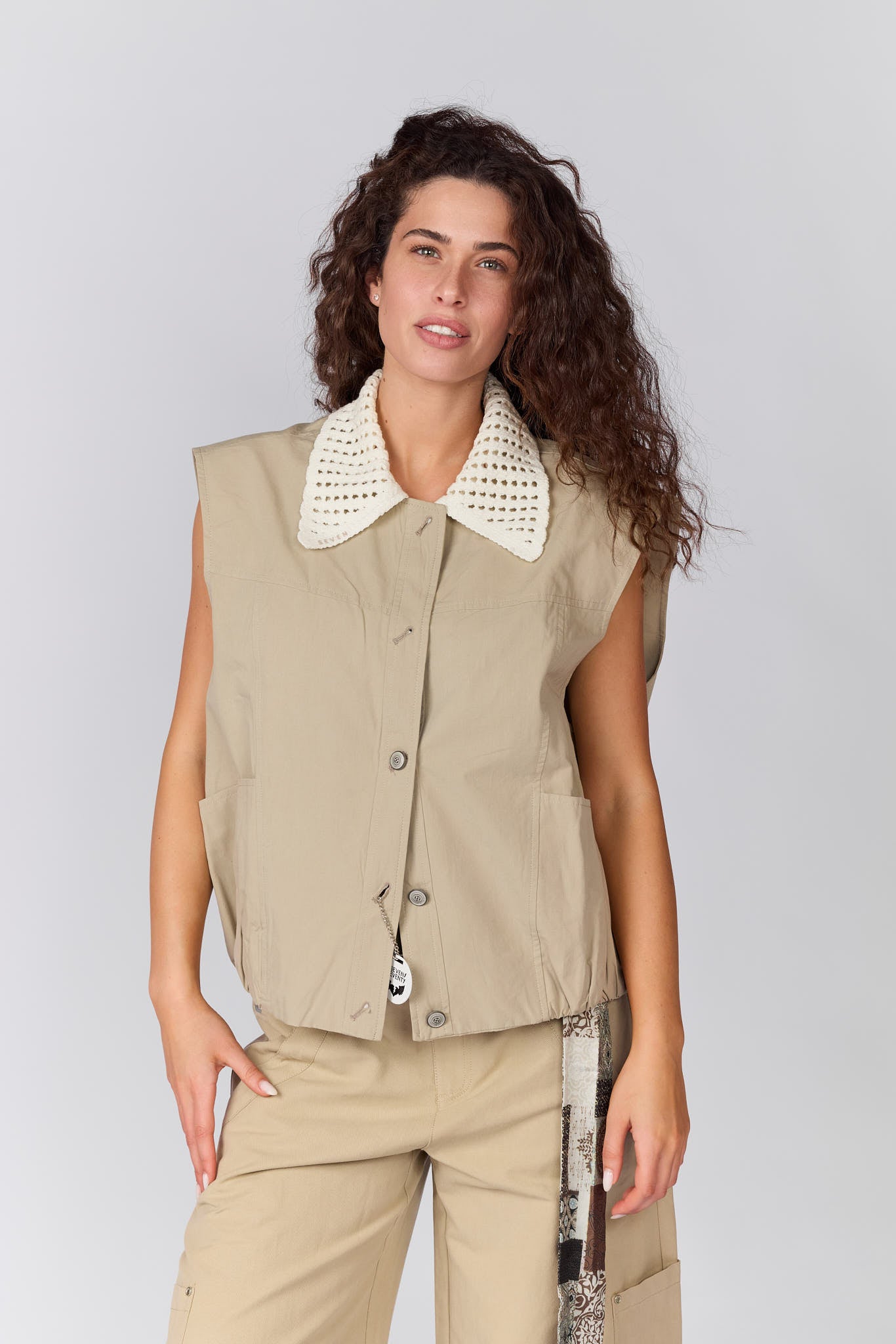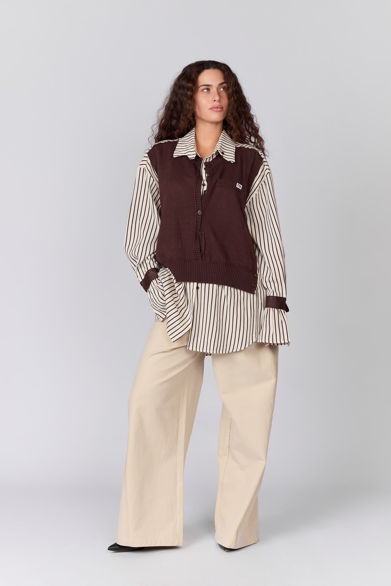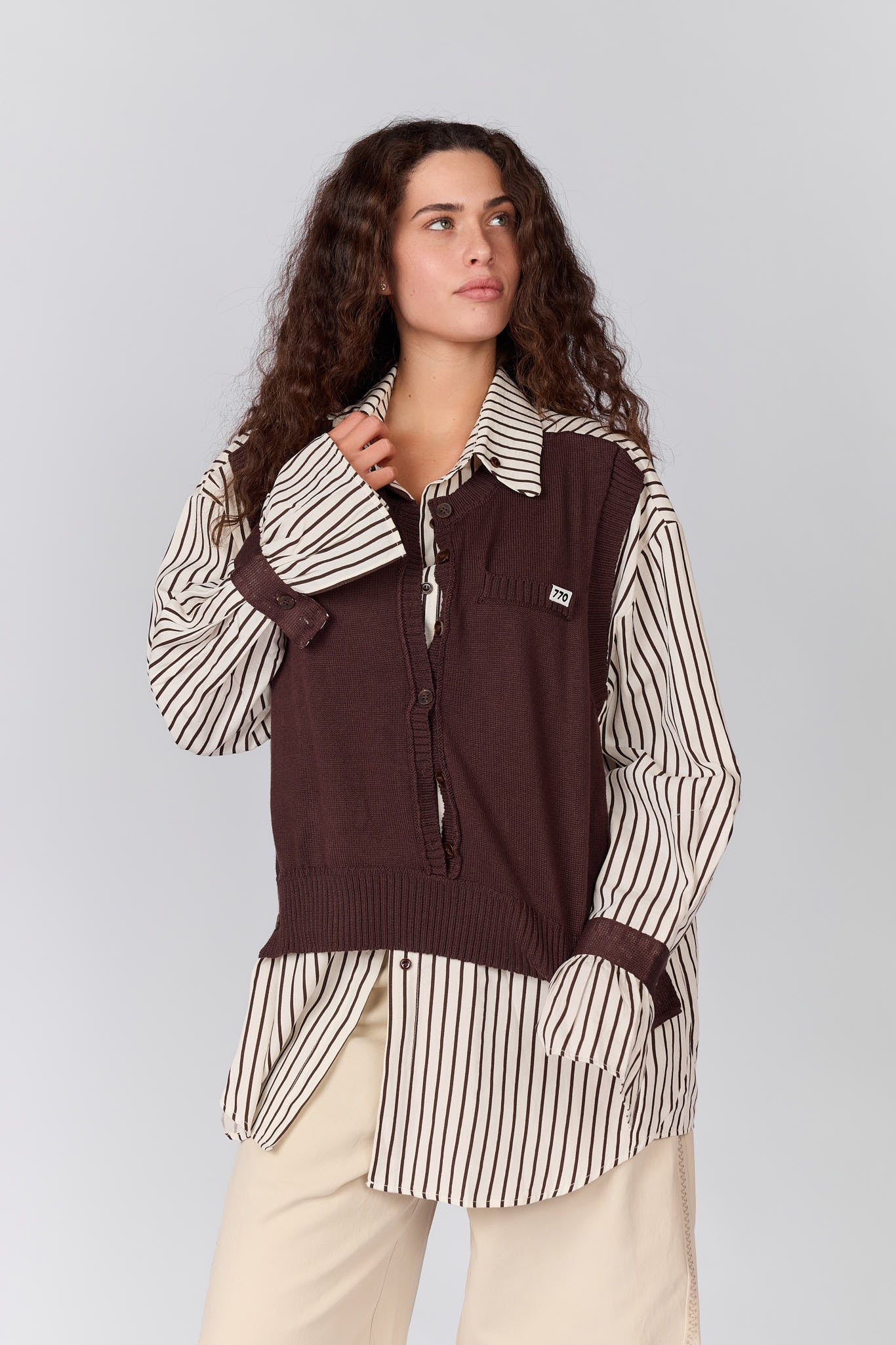 חולצה מכופתרת שילוב וסט סריג
