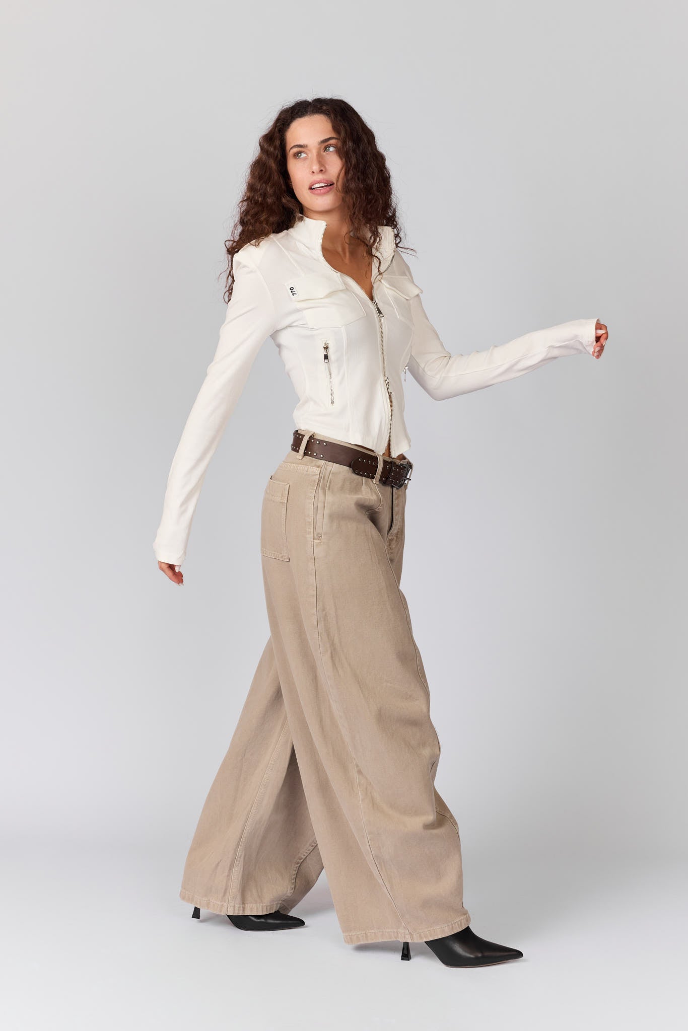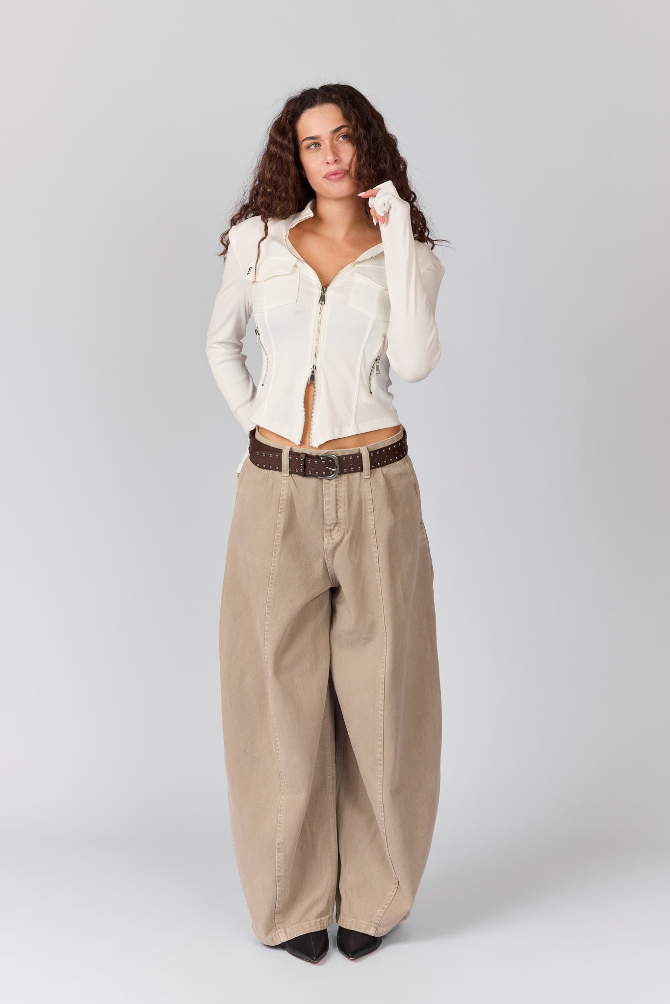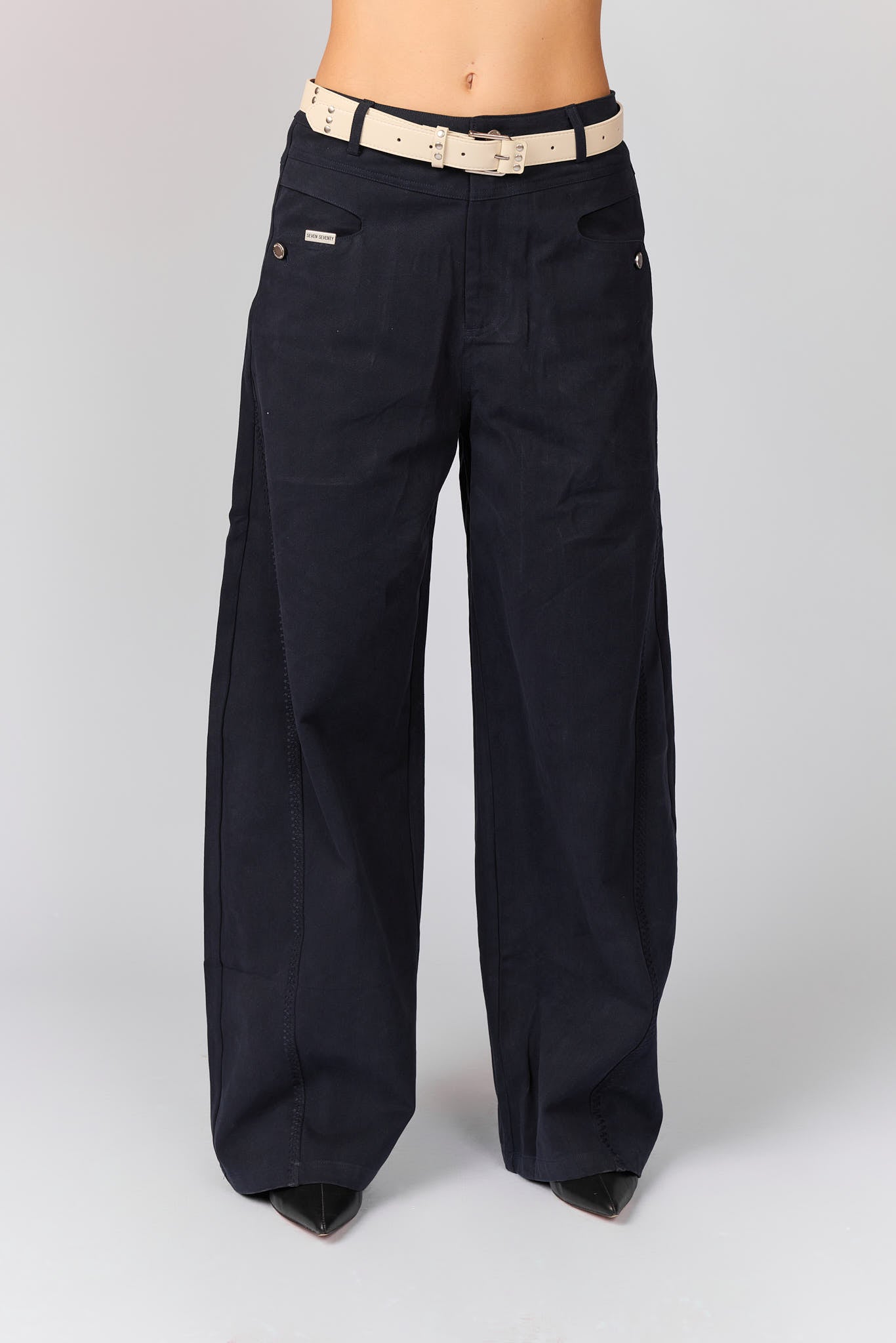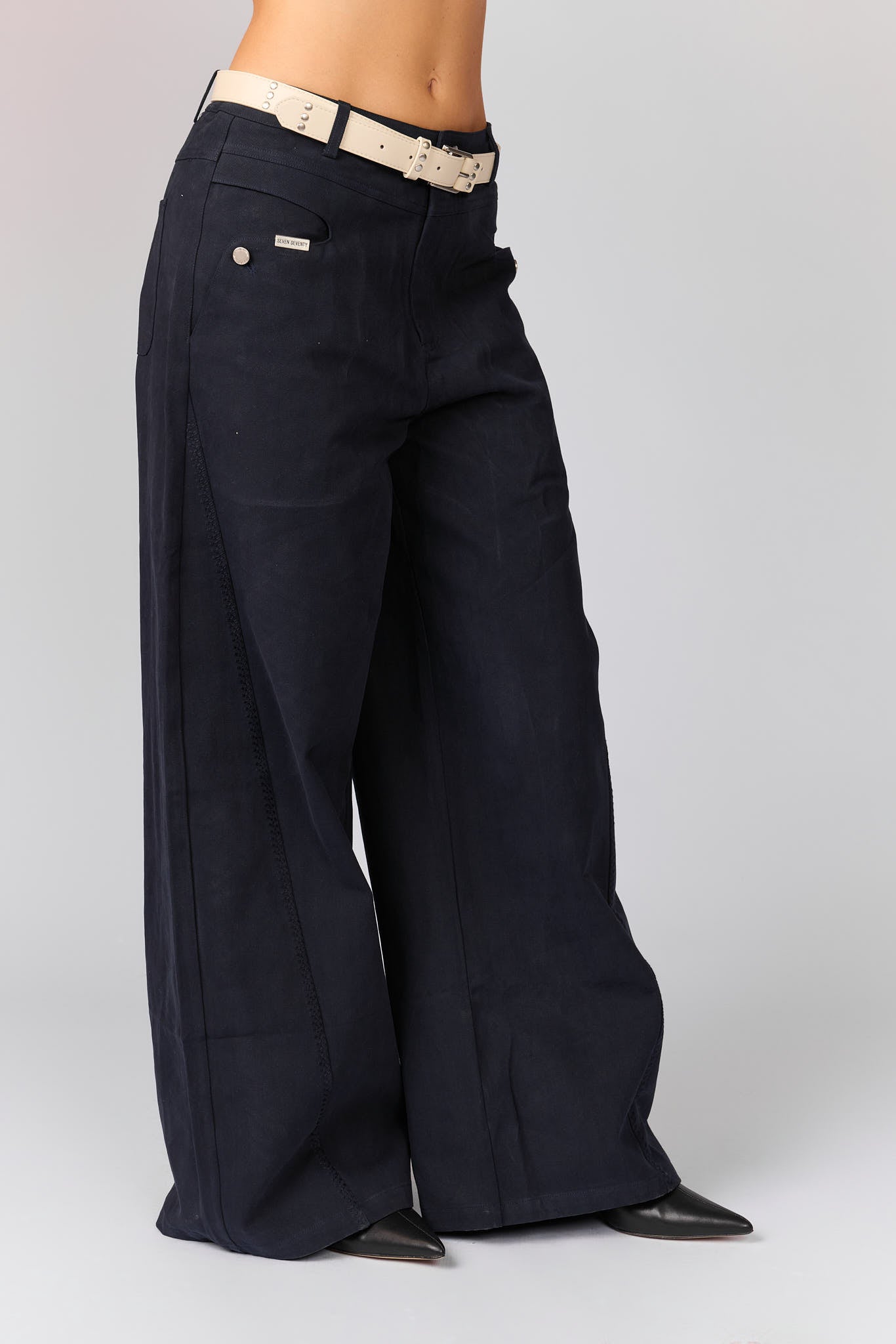 מכנסי ג'ינס חגורת ניטים