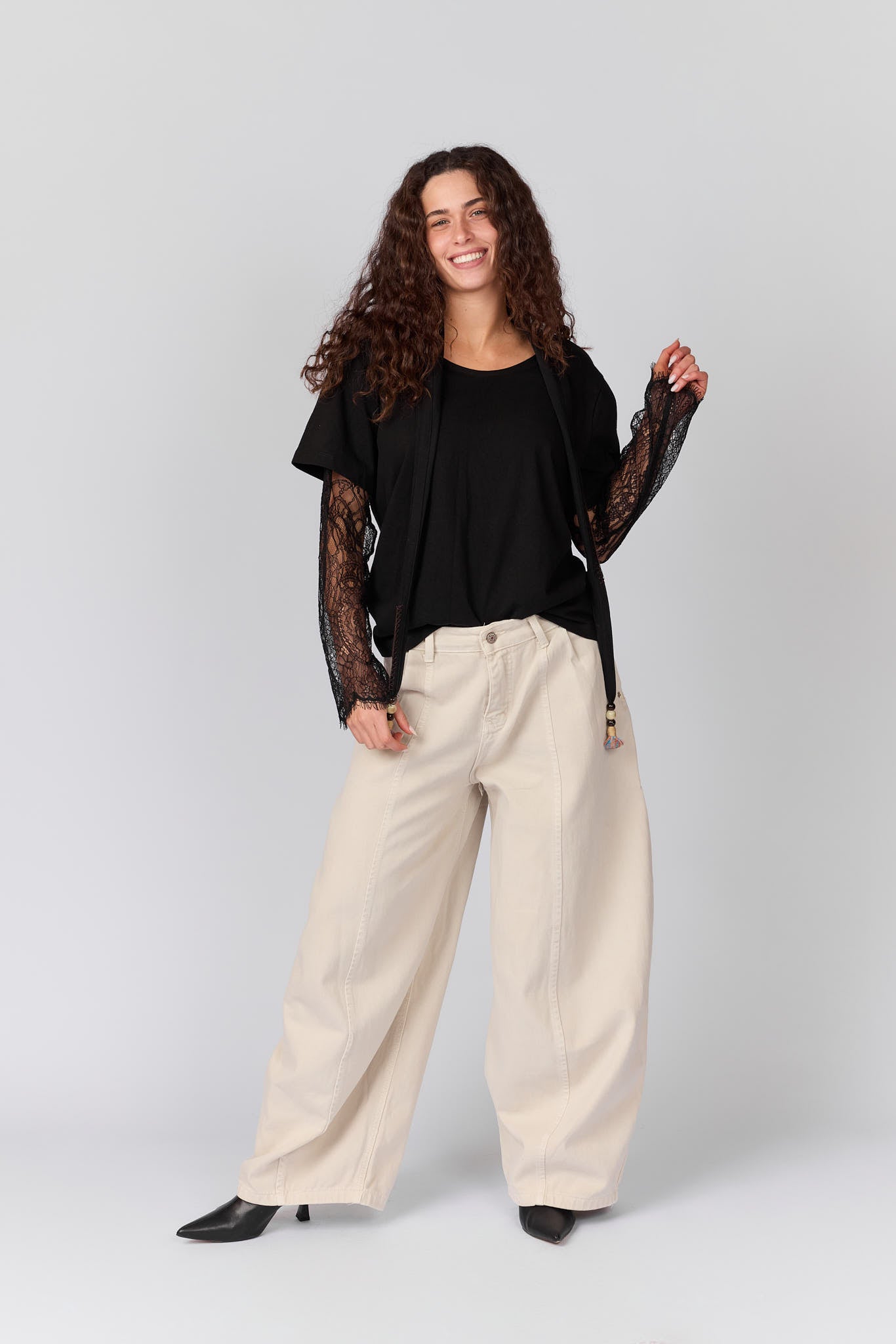 מכנסיים בשילוב חגורת תחרה