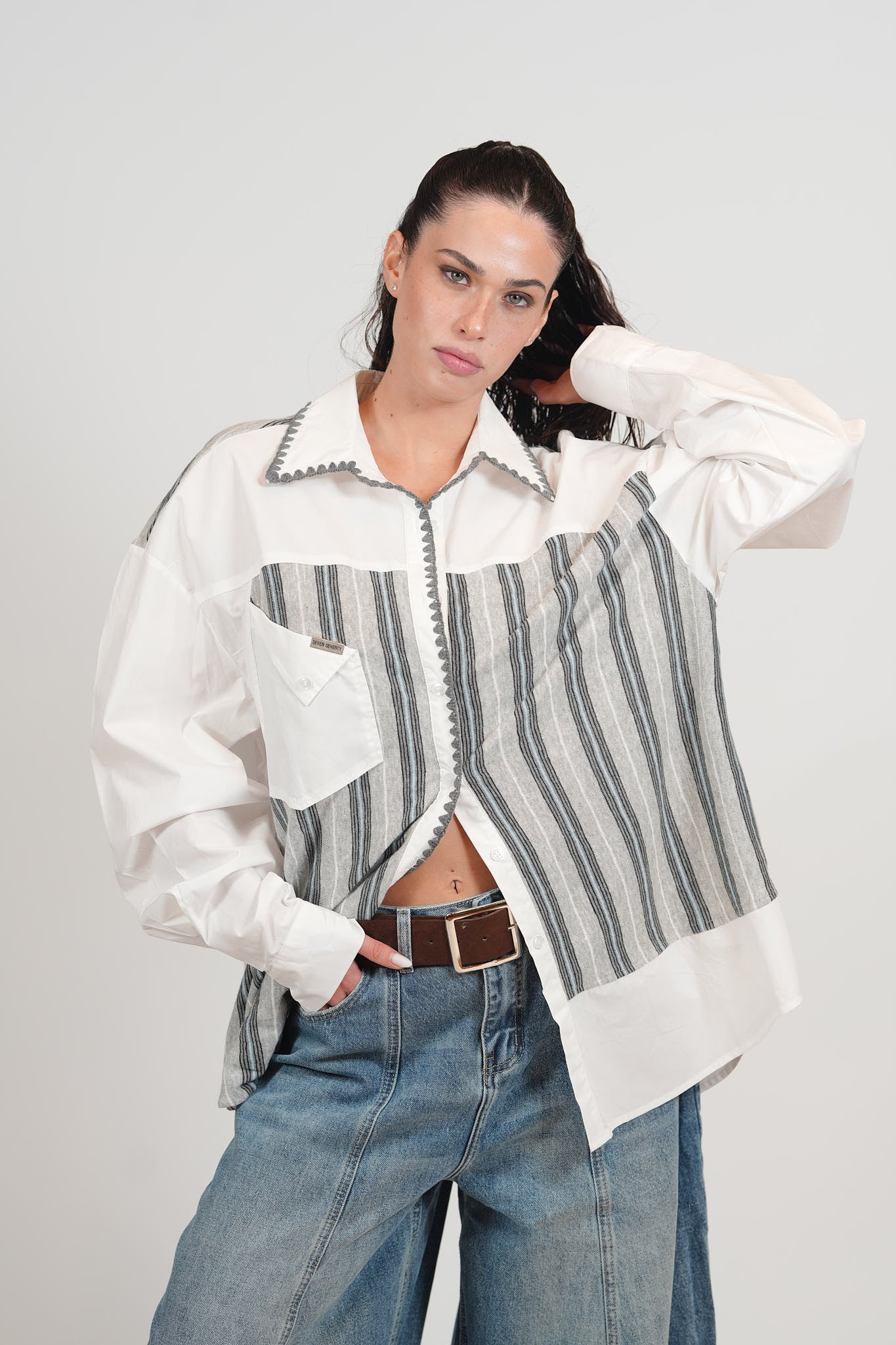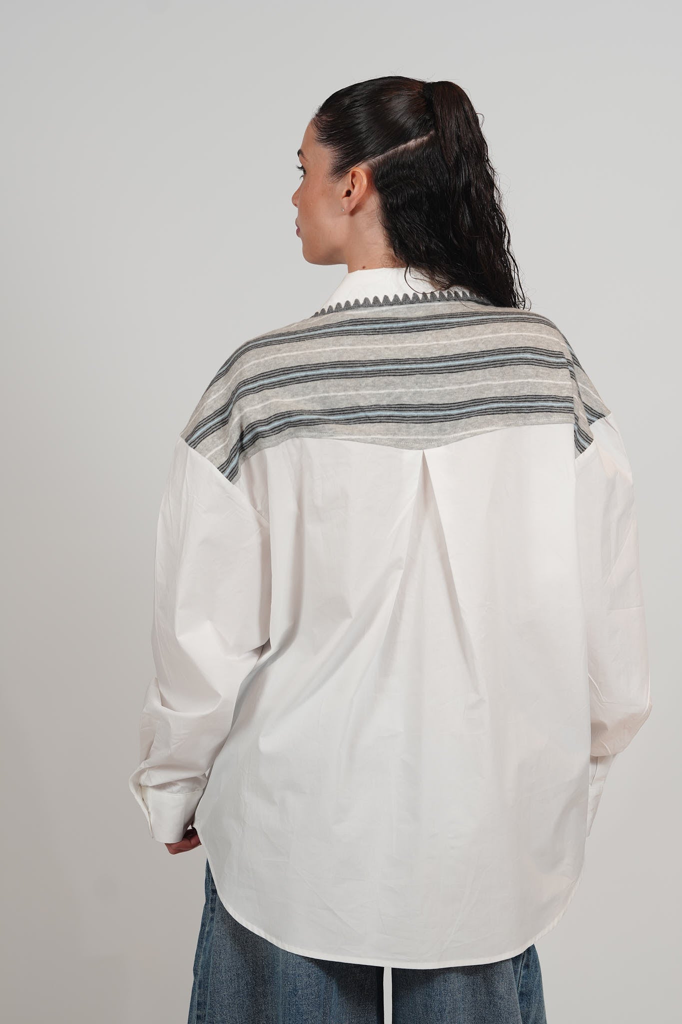 מכופתרת פסים שילוב סריג