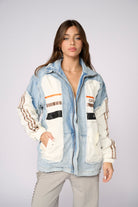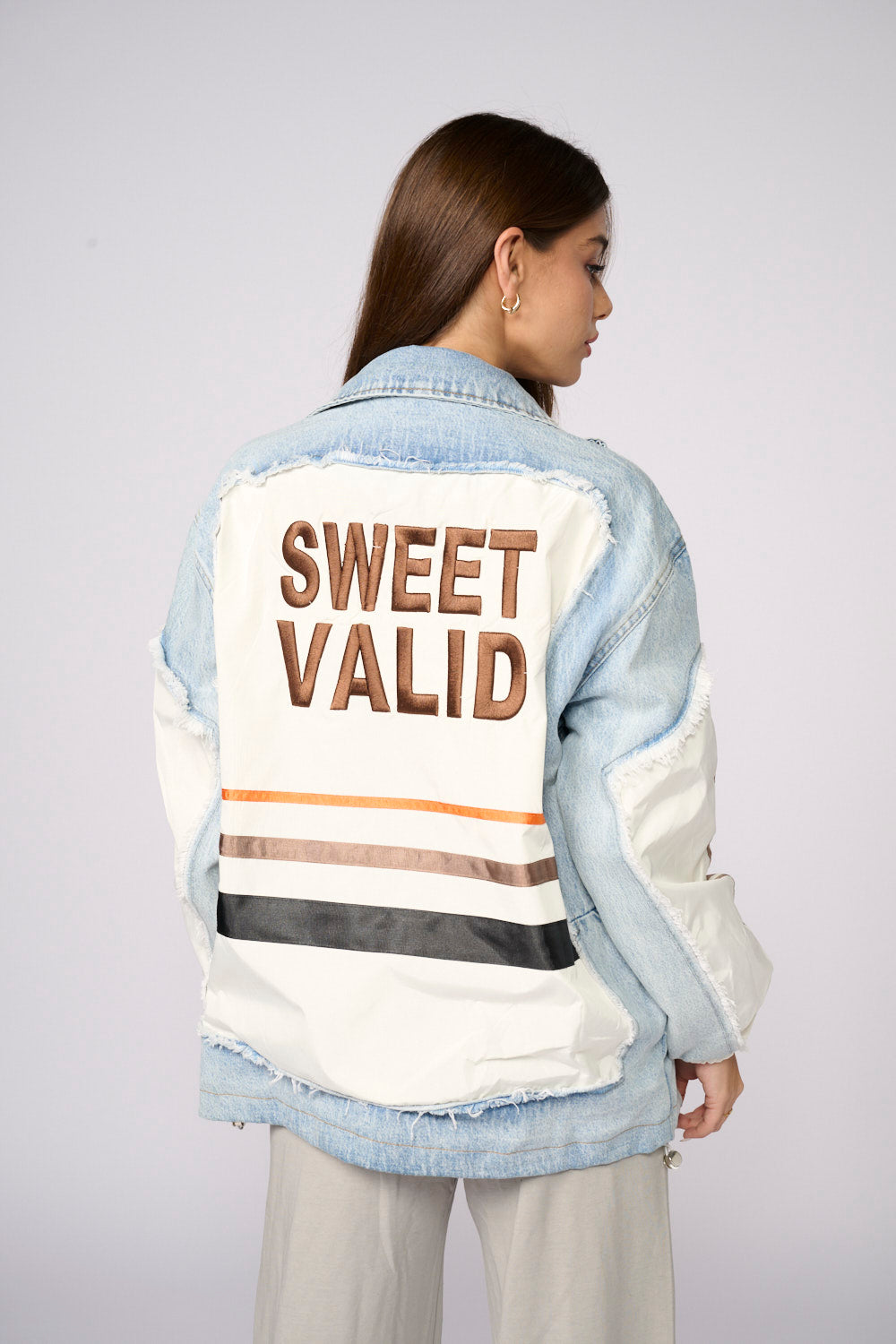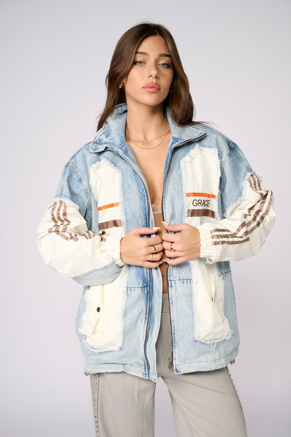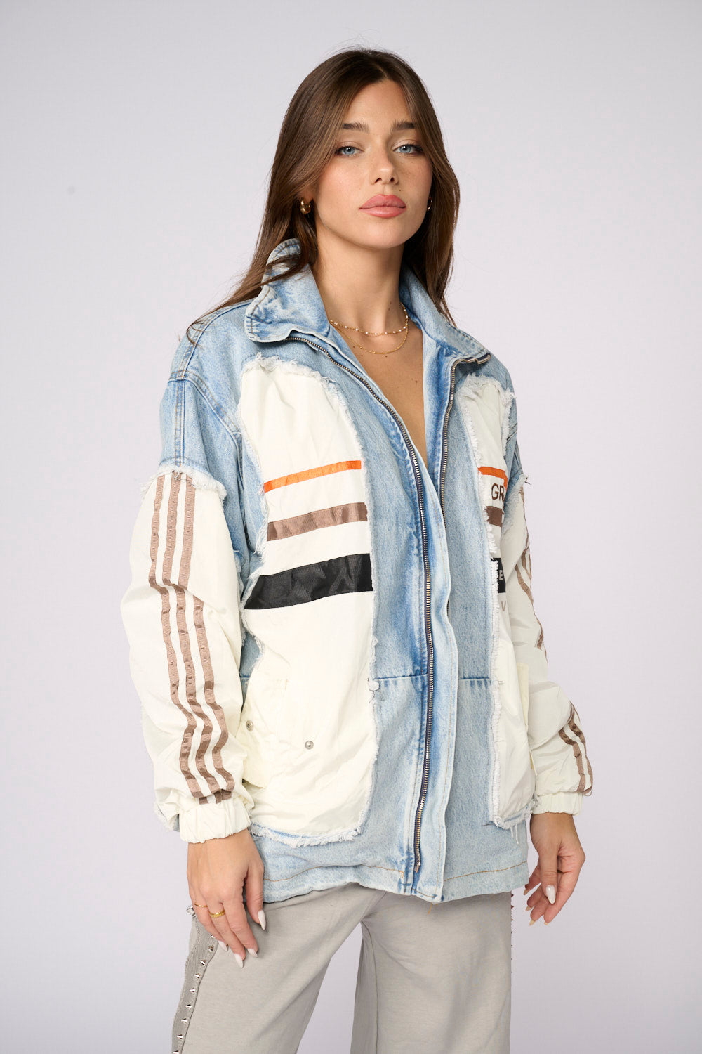 ג'קט ג'ינס בשילוב ניילון עם גומי במותניים שניתן לכיווץ
