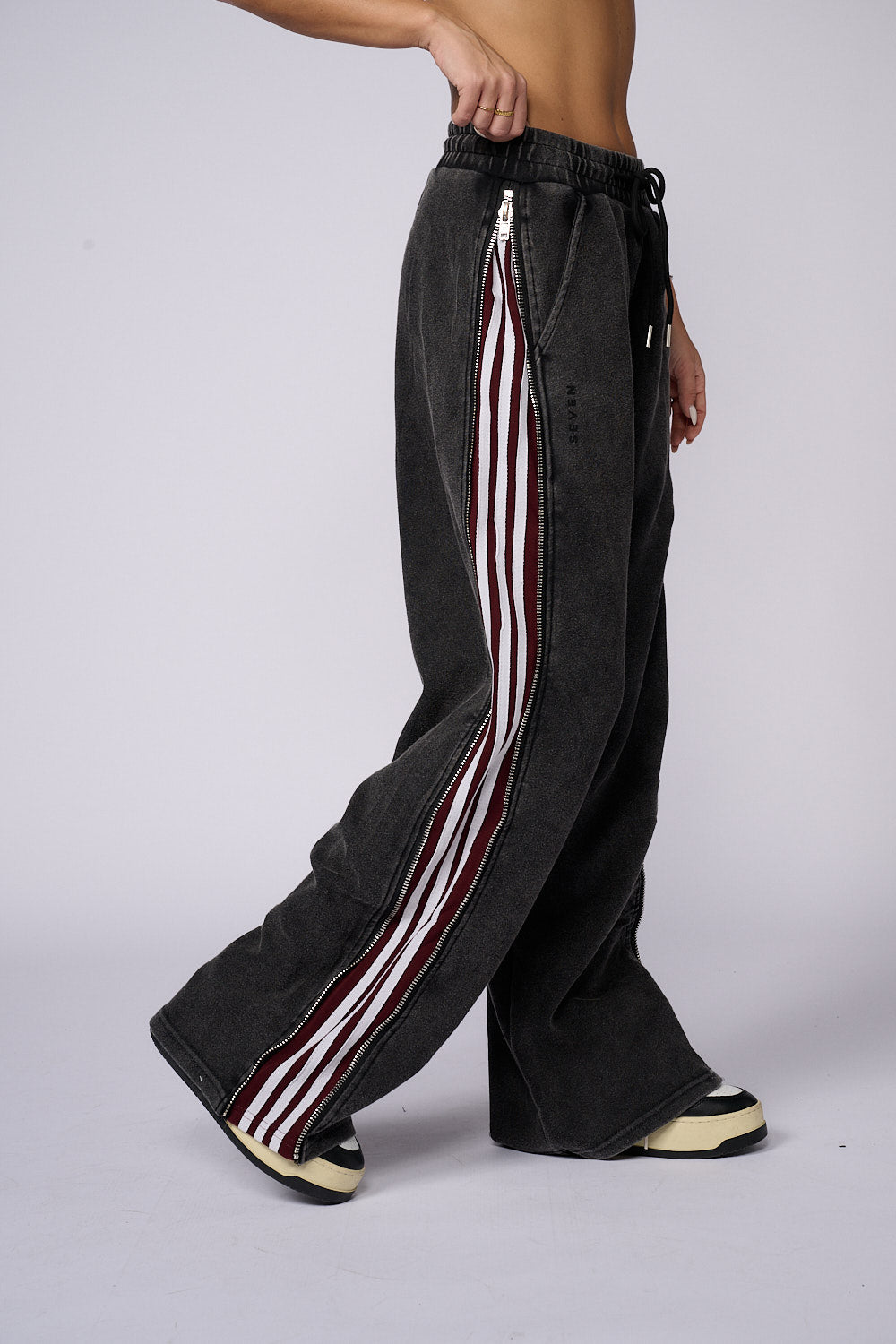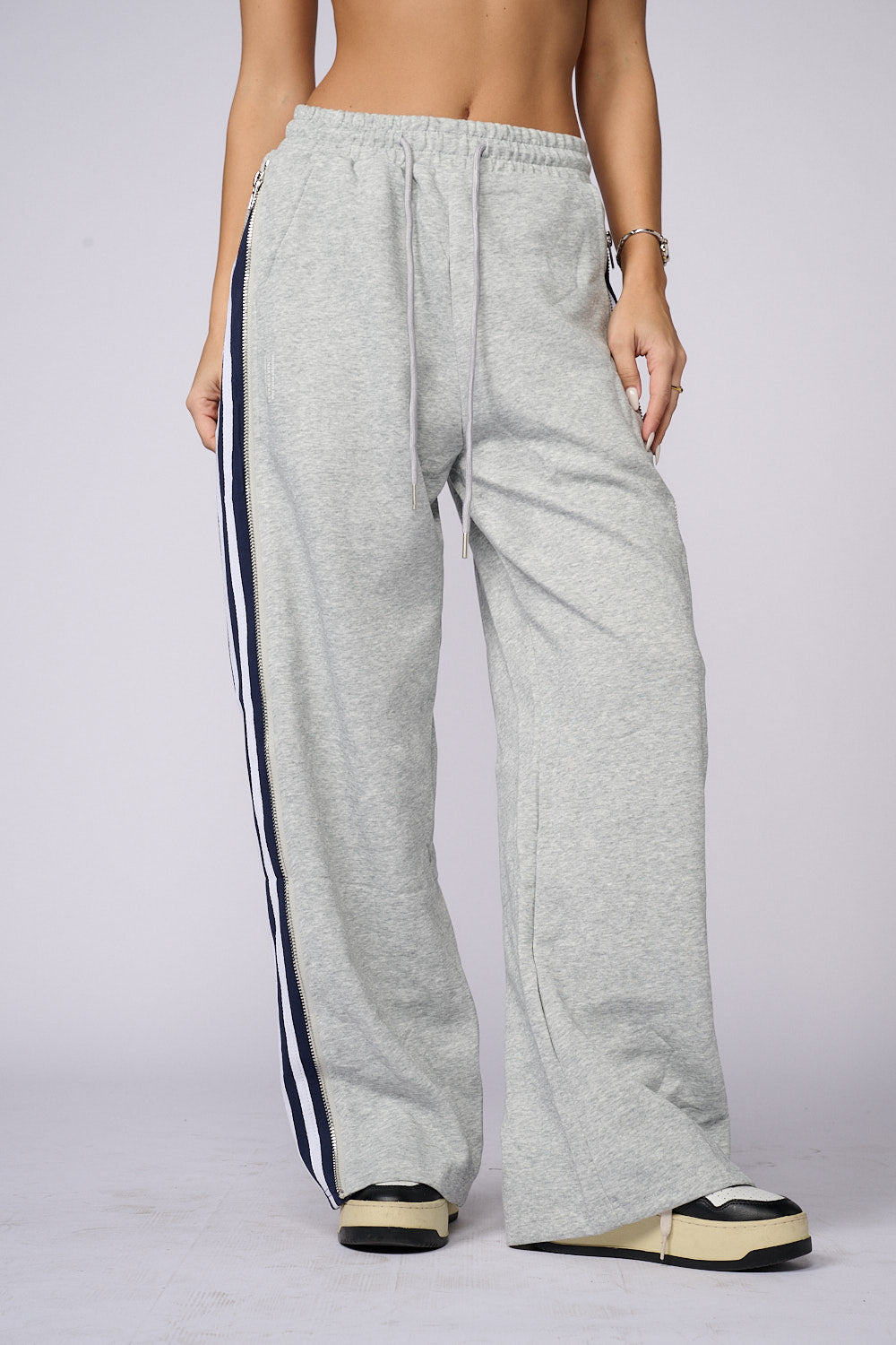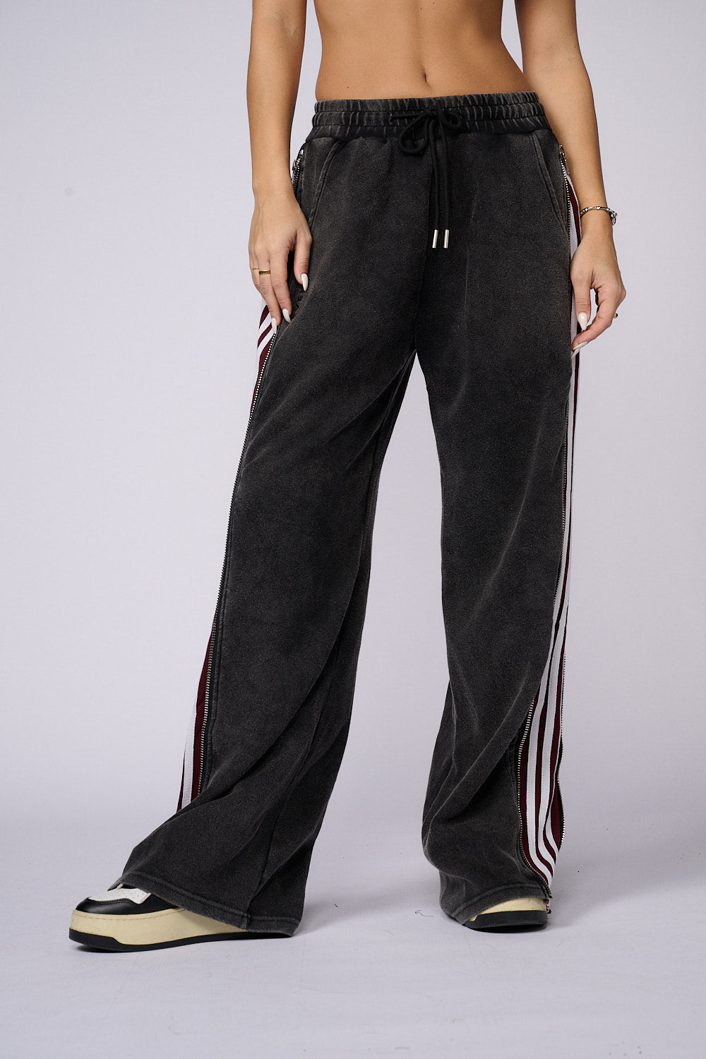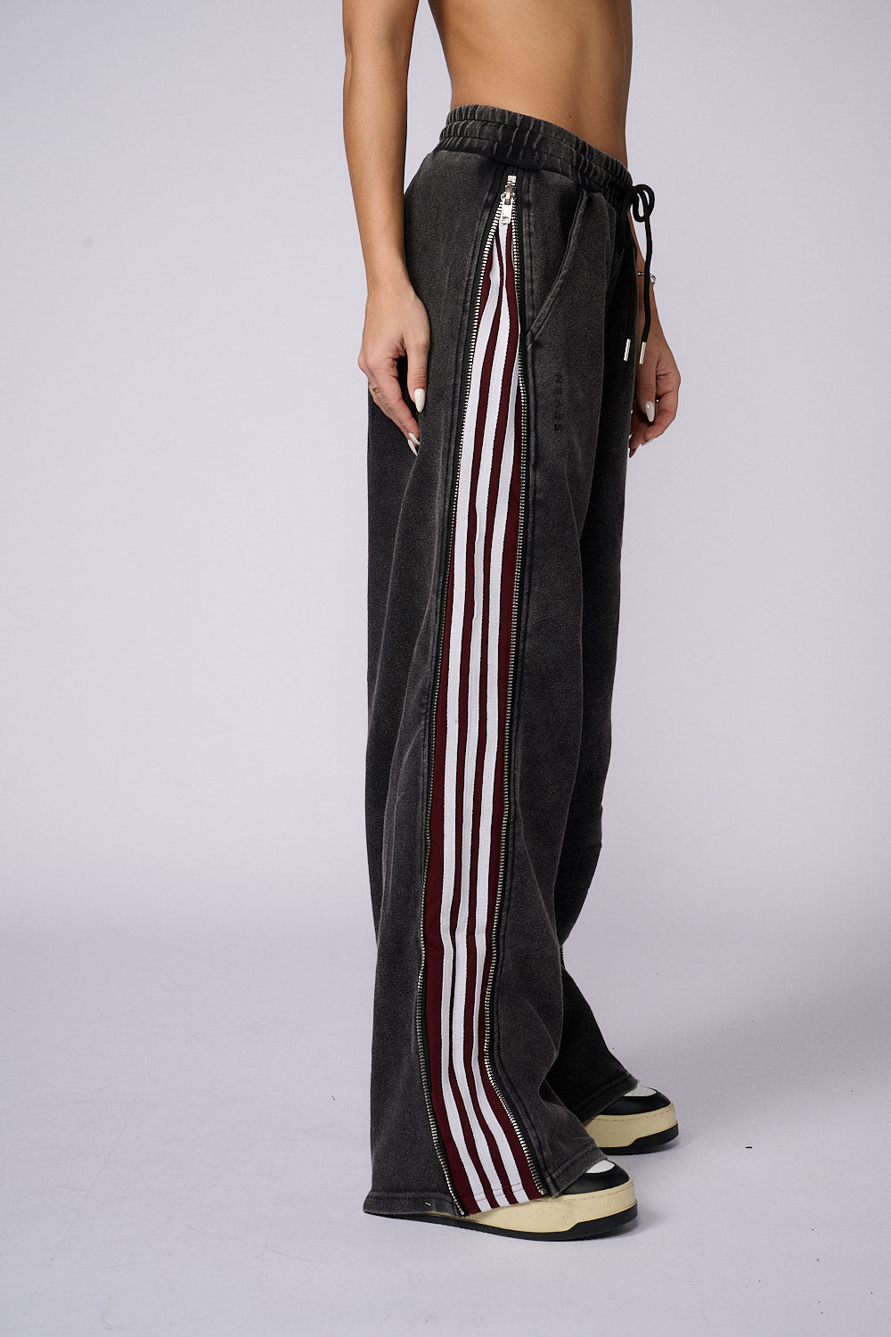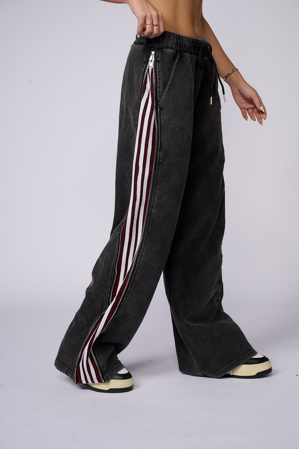 מכנסי פוטר דק ללא ביטנה בשילוב רוכסנים בצדדים ,