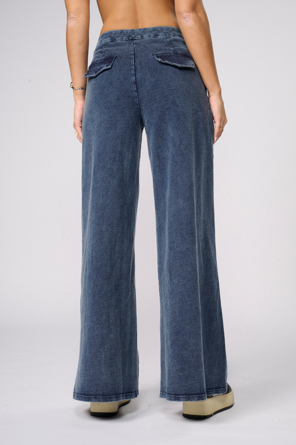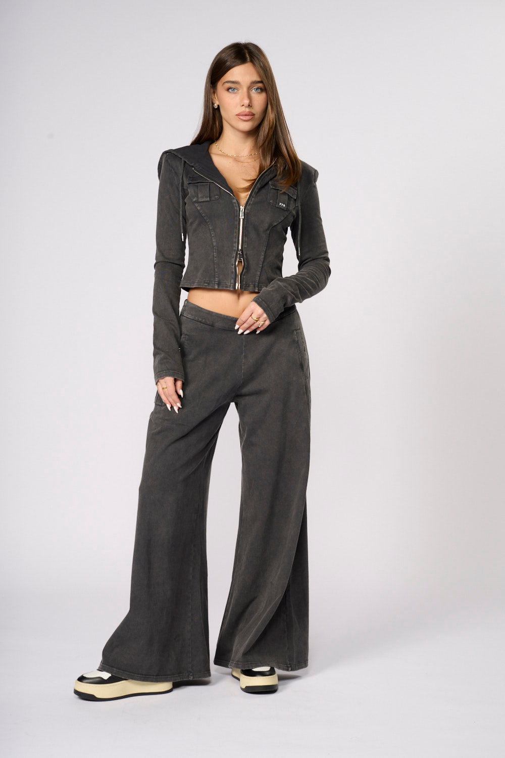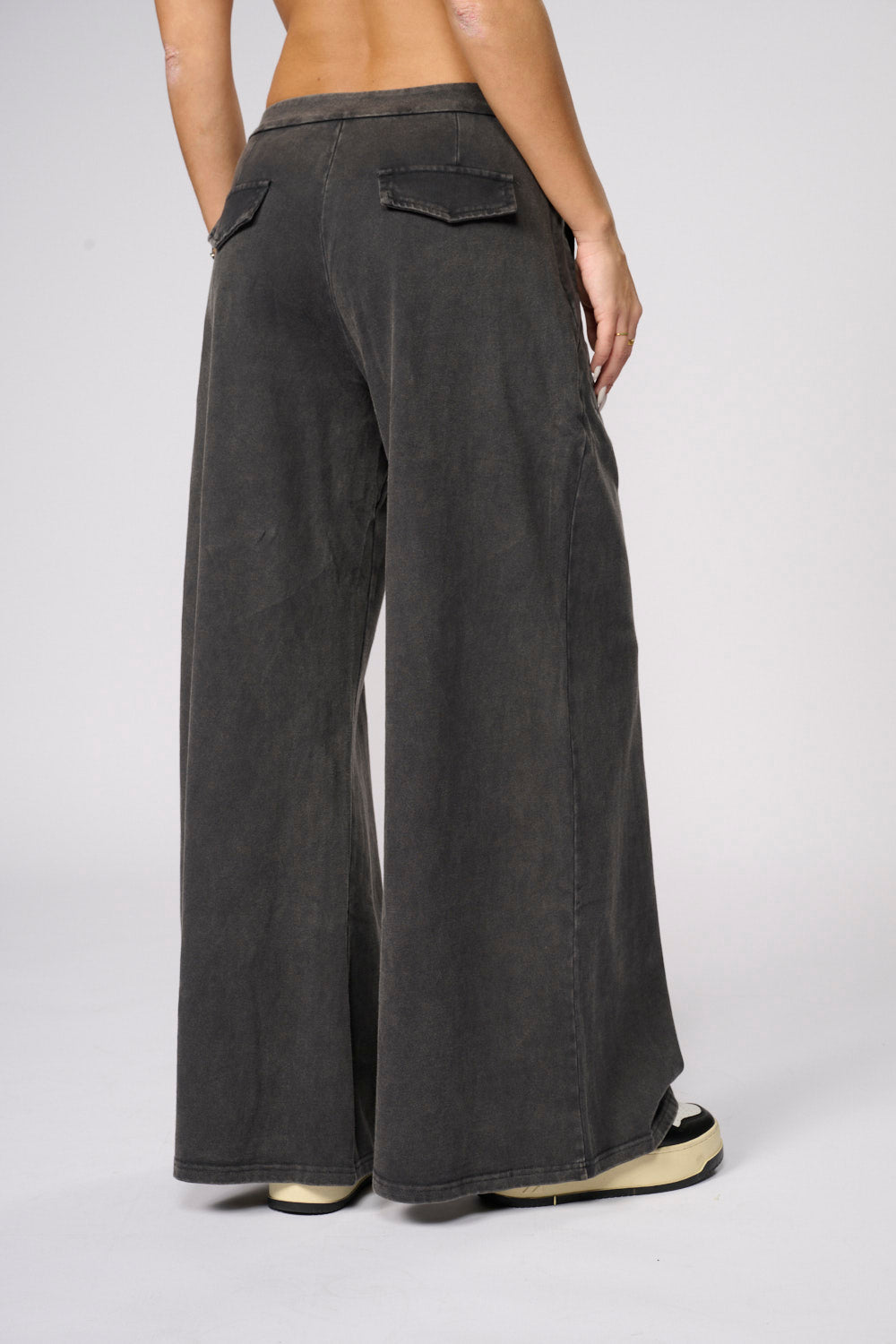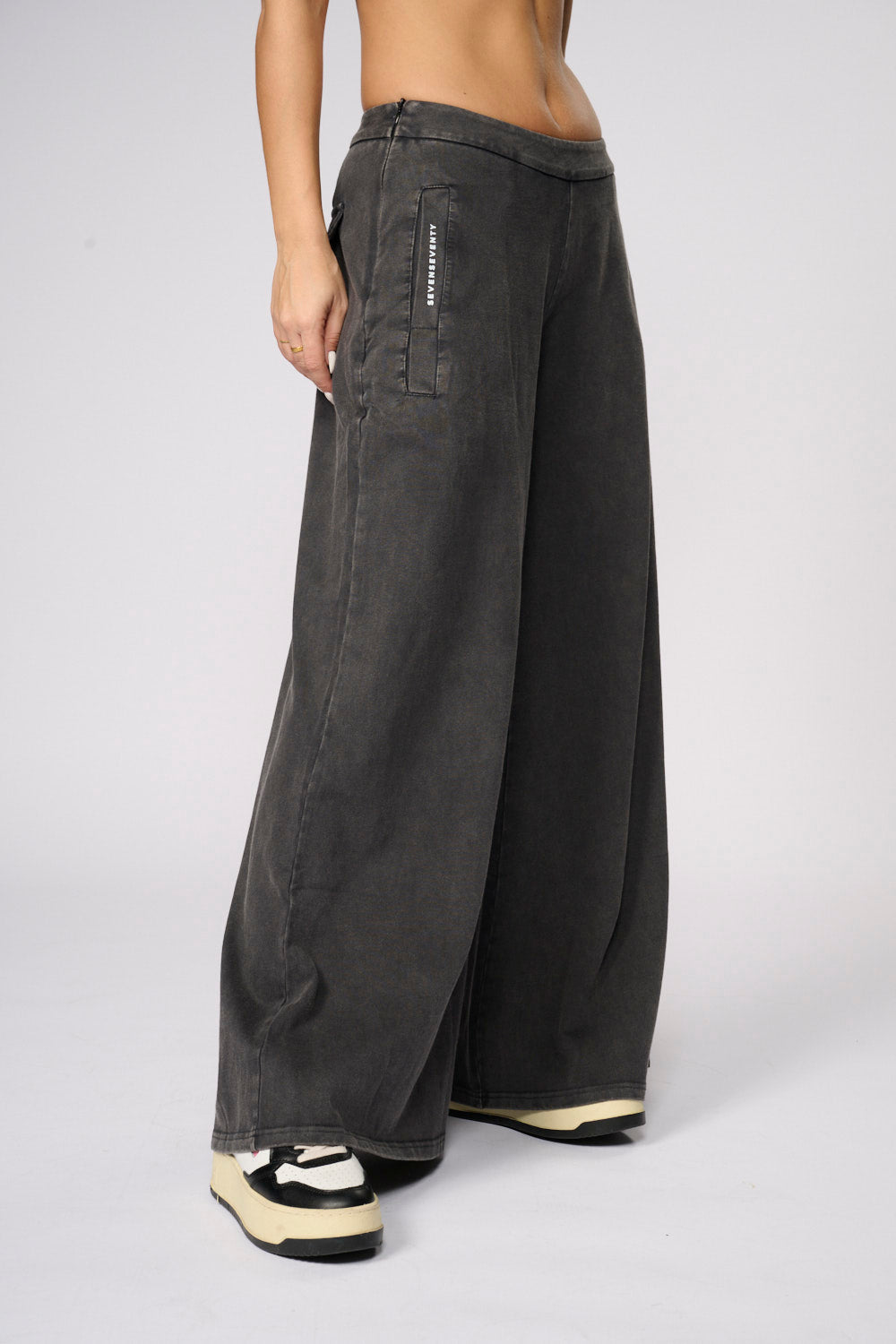 מכנס ג'ינס דק בגזרה רחבה ללא מתיחה עם סגירת רוכסן צדדי.