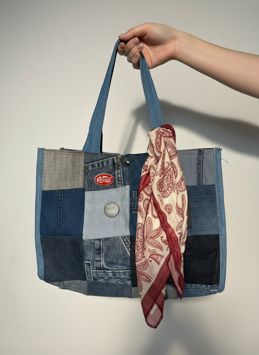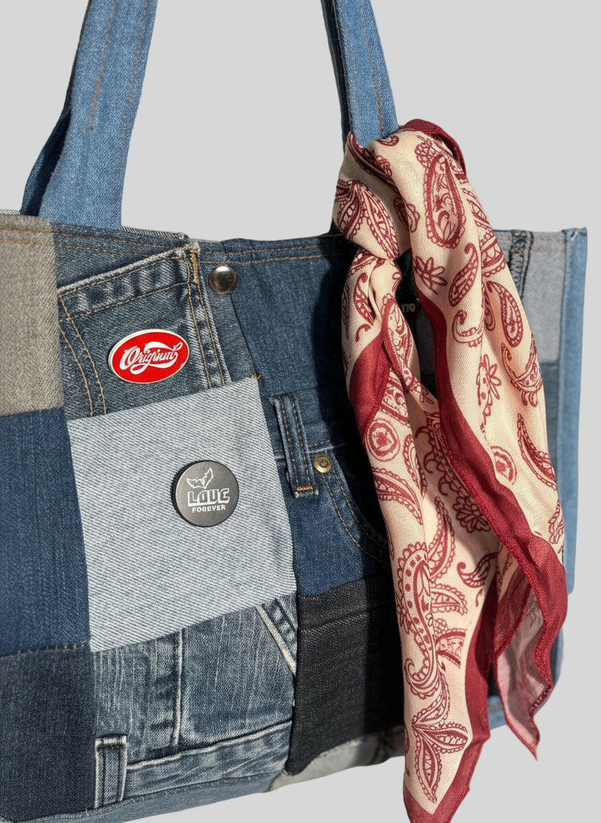 תיק ג'ינס טלאים בנדנה