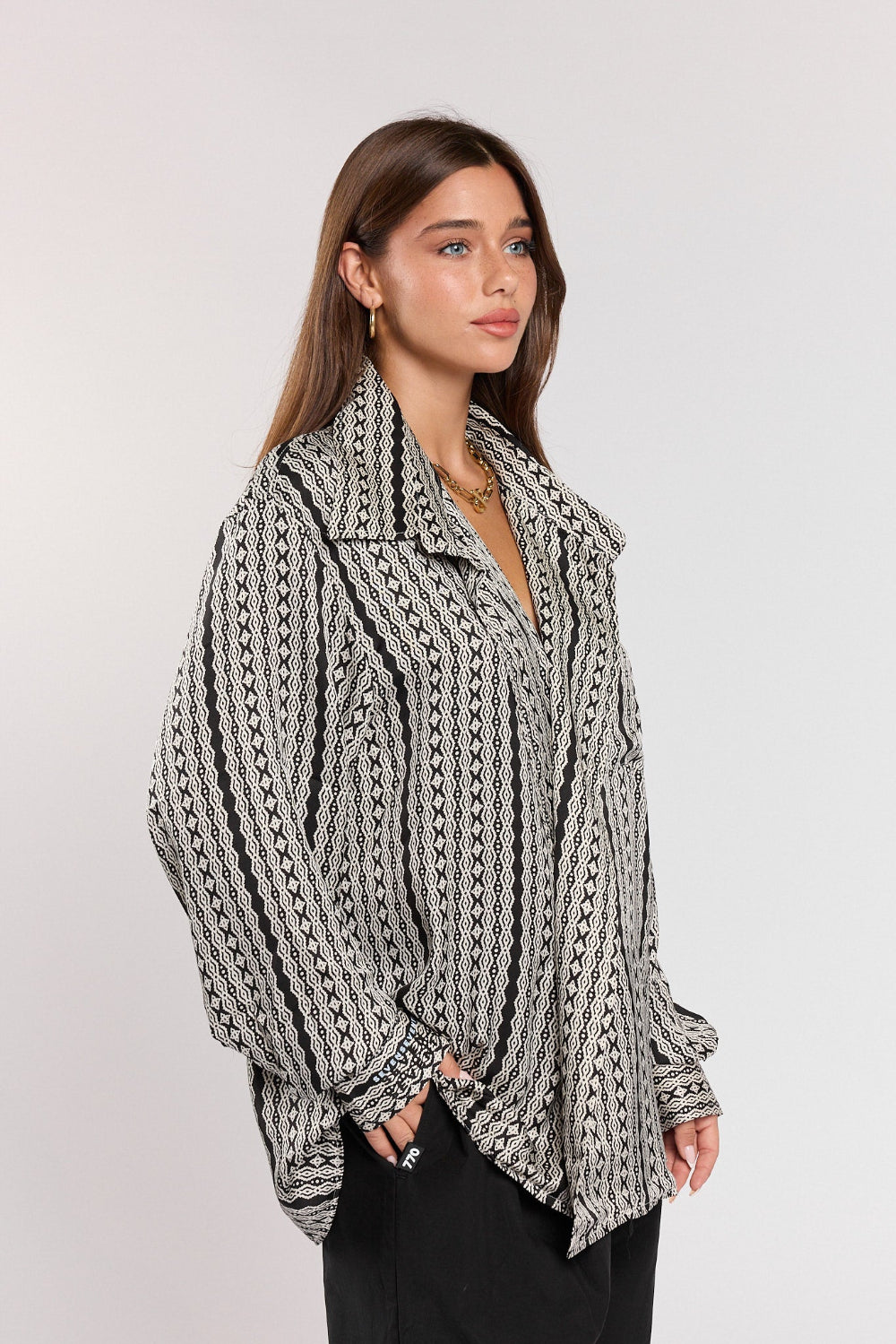 חולצה מכופתרת סאטן גזרת ג'קט 770
