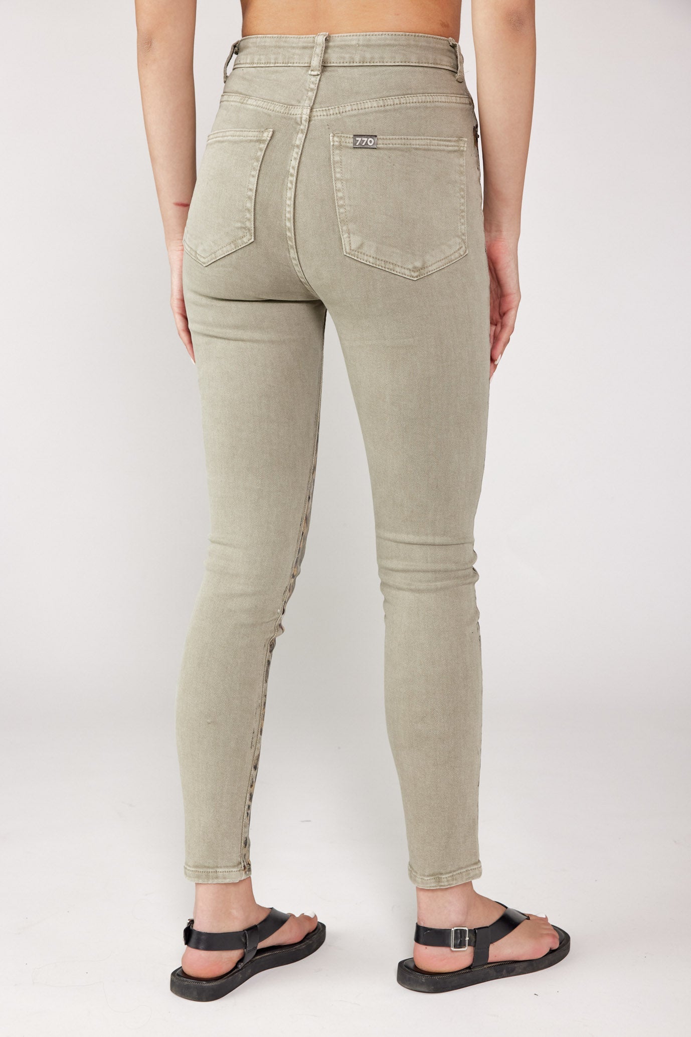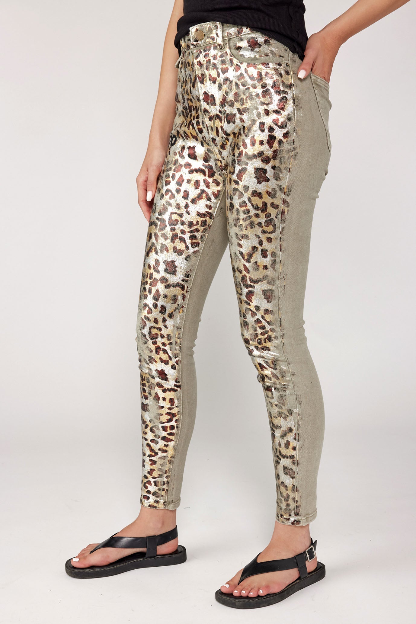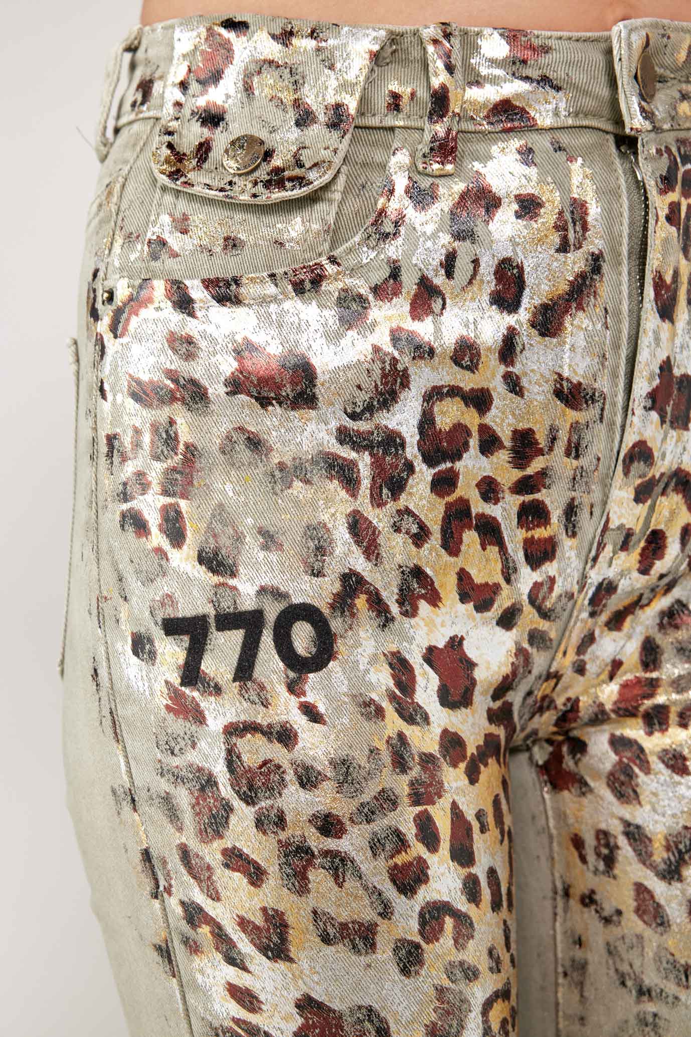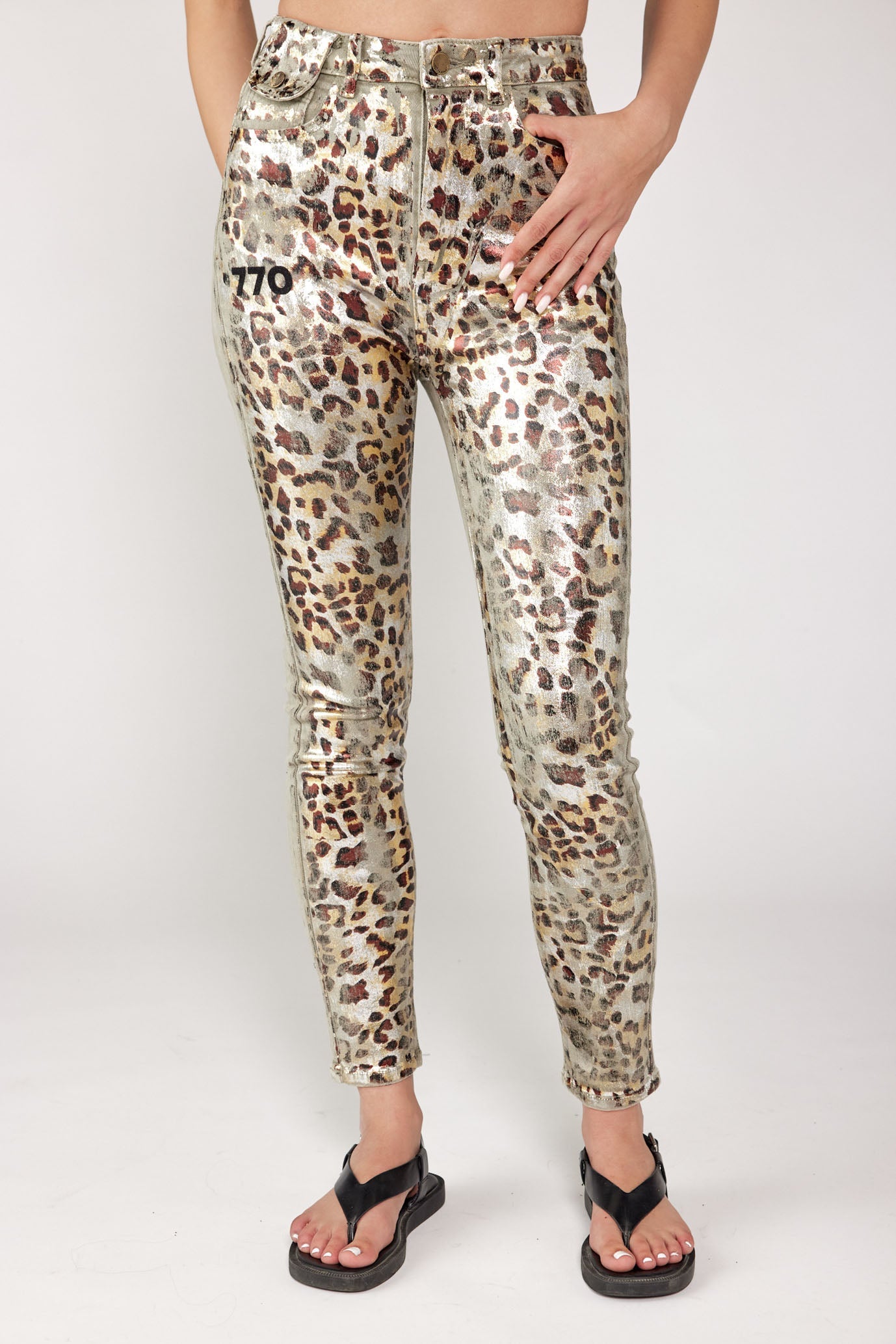 מכנסי ג'ינס סקיני שילוב מנומר מטאלי SEVEN GLAM